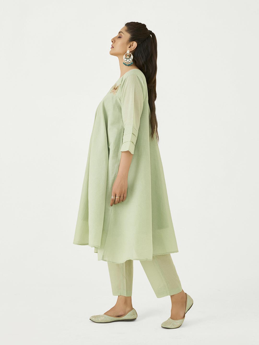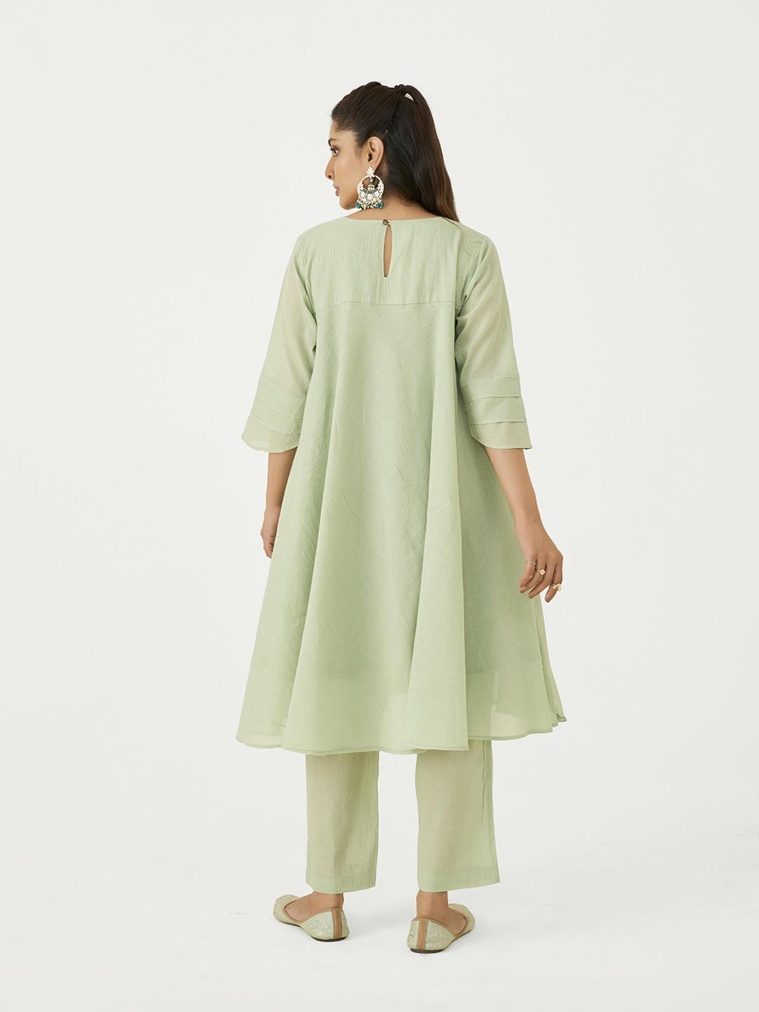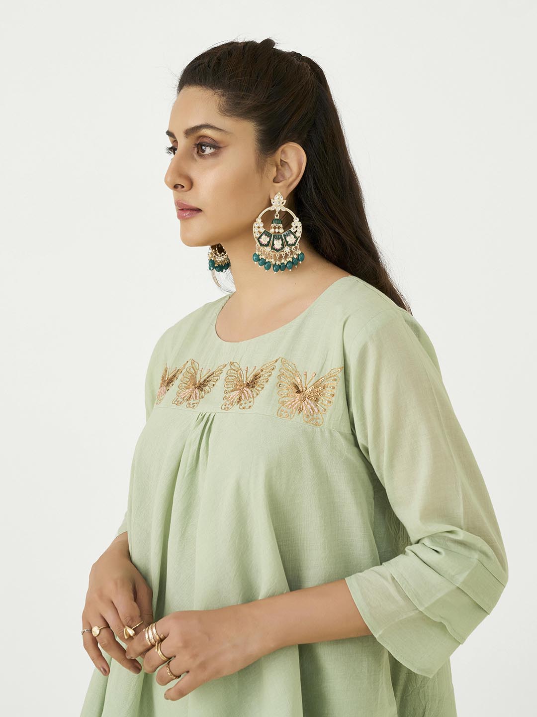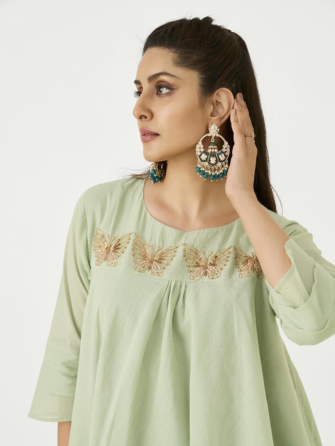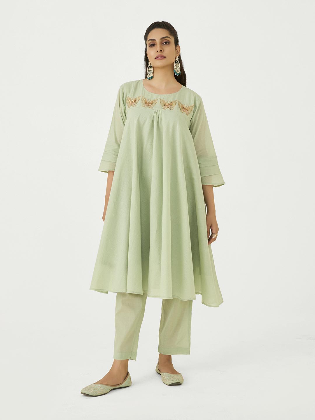 Pista Green Mal Cotton Co-Ord Set with Butterfly Work
